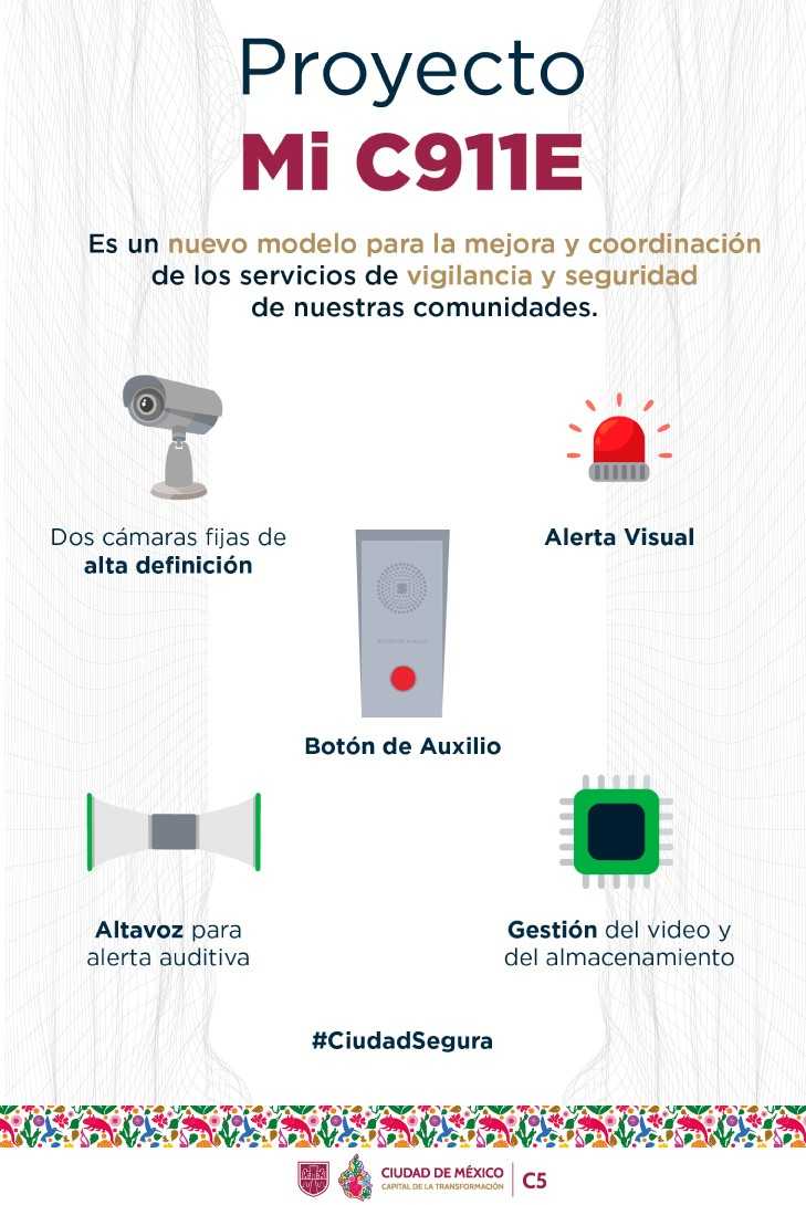 Los "Totems" de Mi C911e, son postes con cámaras de vigilancia, altavoz y botón de pánico enlazados directamente al C5 que envían una alerta en tiempo real para recibir el apoyo inmediato de una unidad de los cuerpos de emergencia, en el caso de necesitarlo.